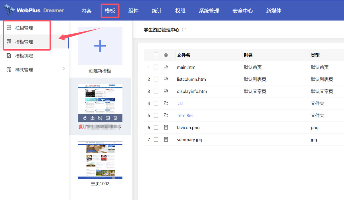 进入新建好的站点,在【模板】-【栏目管理】/【模板管理】中,配置栏目和网站模板,建站即刻完成。