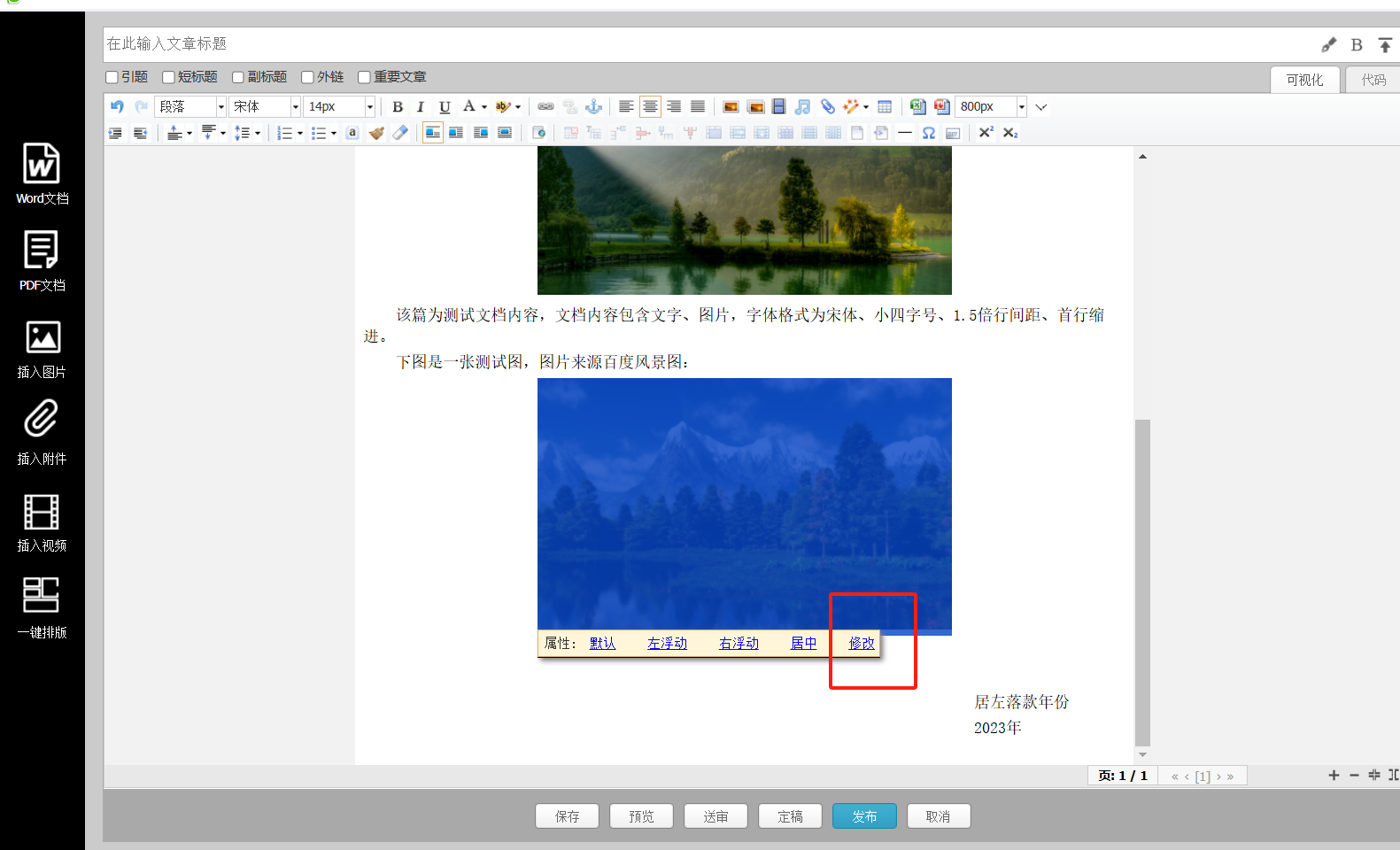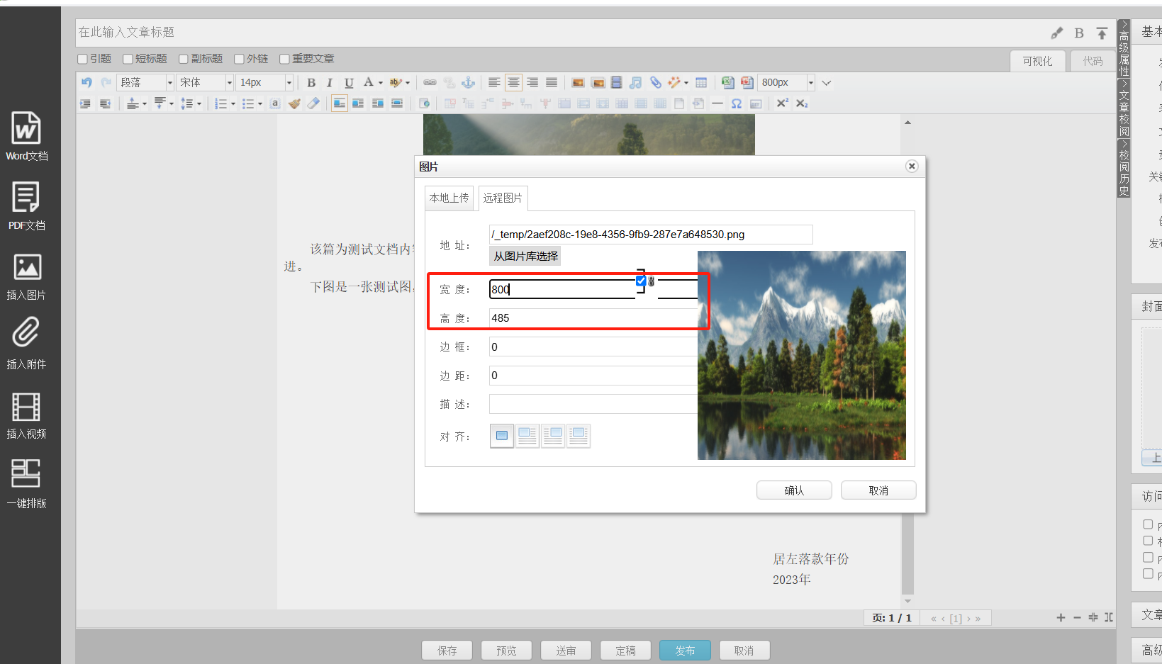 Word里上传到后台的图片,宽度会窄一点,可以在文章编辑器里修改下,但是图片多的情况下,就得每张图调下宽度,宽度建议800px: