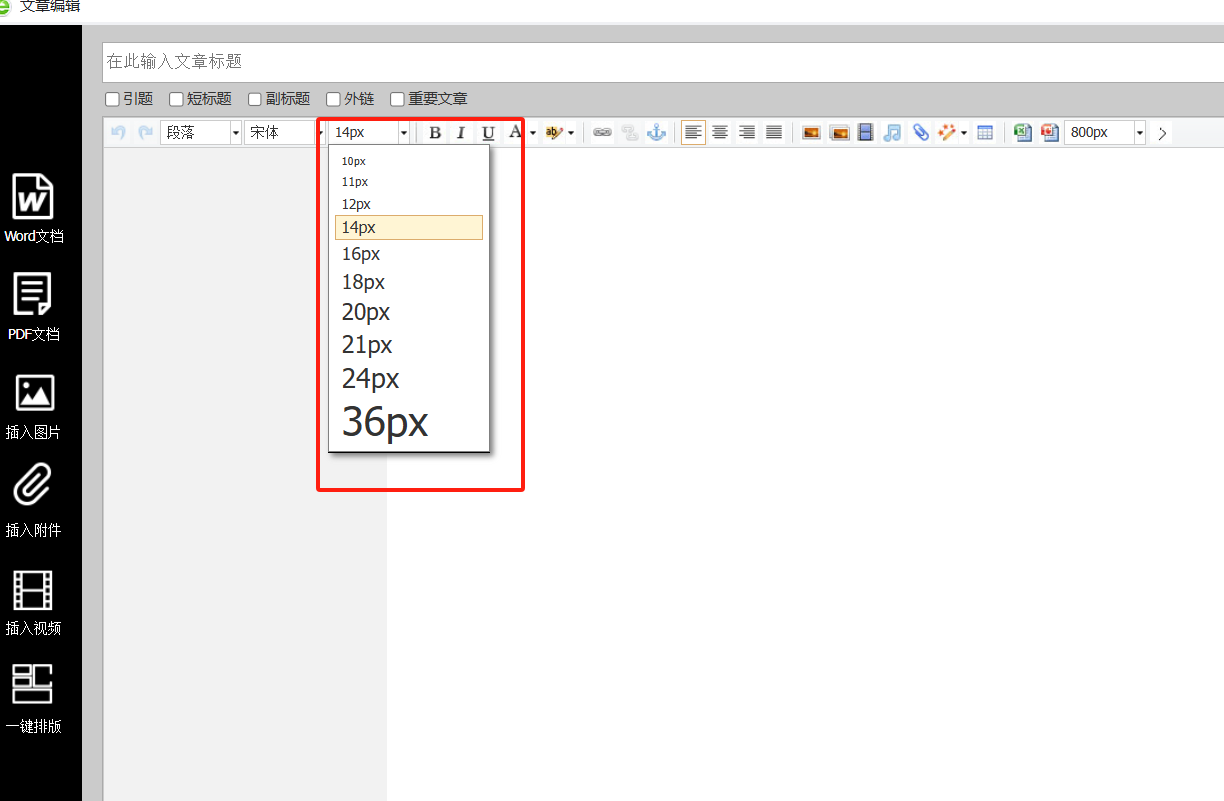 小四对应的字号是16px,四号对应的是18px,如果在文档里没调字号,可以在文章编辑器里调整。